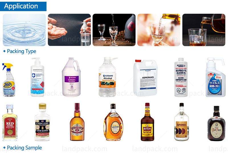 This bottle tracking filling line can be customized to fill various products such as alcohol, liquor, cocktails, brandy, vodka, wine, hand sanitizer, mouthwash, oil, liquid detergent, shampoo, sauce, paste, honey, tomato sauce, salad sauce, etc.