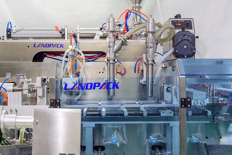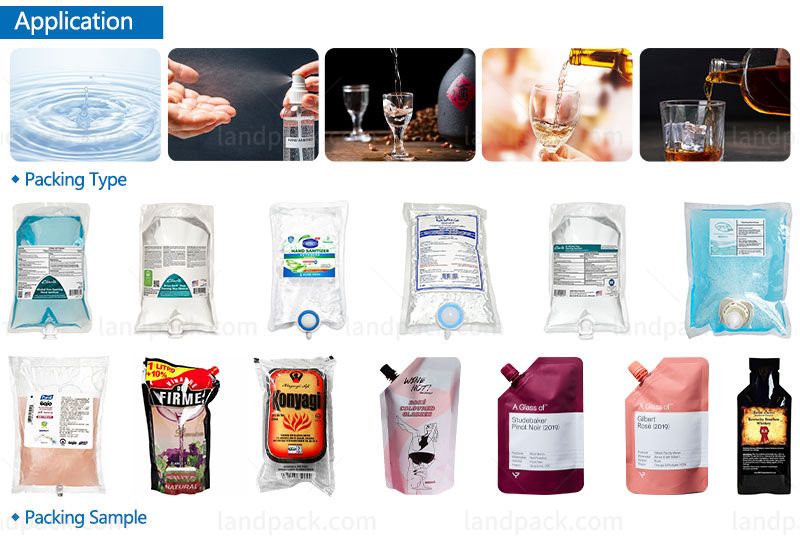 This liquid filling packing machine suitable for kinds of liquid products and can pack different premade bags. It is applied for various kinds of liquid such as honey, milk, oil, ketchup, paste, sauce, fruit juice, hand wash, laundry liquid. After equipped with explosion-proof devices, it can be used for various flammable and explosive liquids, such as alcohol, spirits, disinfectant, etc.