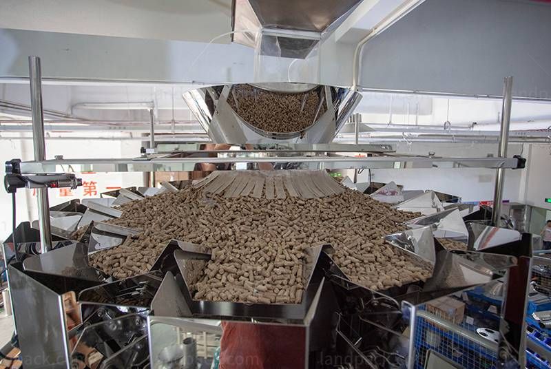 Suitable for weighing packaging of 5-15 kg granular products, such as grain, dog food, cat litter, cat food, plastic parts, hardware parts, fish food and other granular packaging.