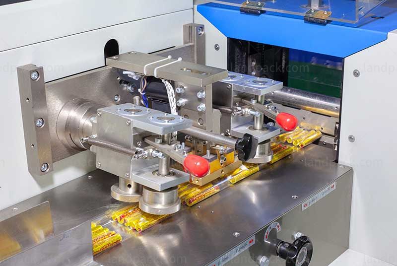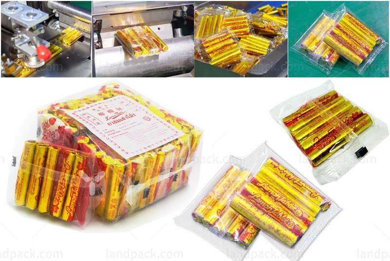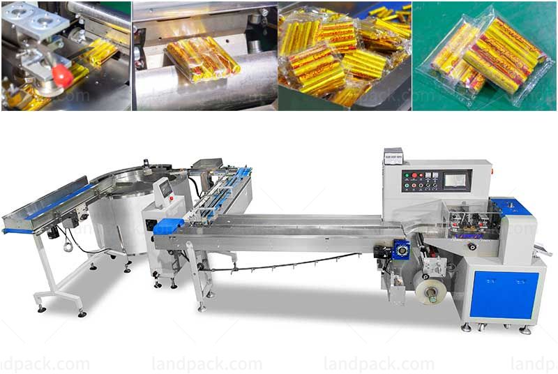 Automatic Lemon Cake Horizontal Flow Wrap Machine, Suitable for packing all kinds of strips, rods and other bulk conventional shapes into one bag. Such as lemon cakes, waffles, Swiss rolls, moon cakes, etc.