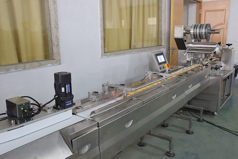 Suitable for packing Bread, Waffle, Swiss Rolls, moon cake, Shredded Pork cake and other regular shape objects. Front end of the packing line can be integrated seamless to the production line to achieve continuous feeding, manpower material loading is also available.