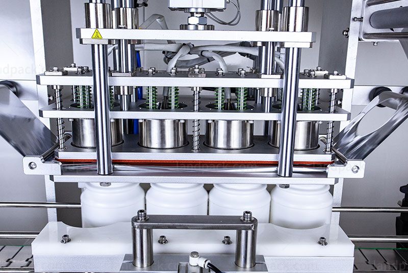 6. After sealing is finished, the bottle-sticking air cylinder will be pulled in to proceed to the next sealing procedure.