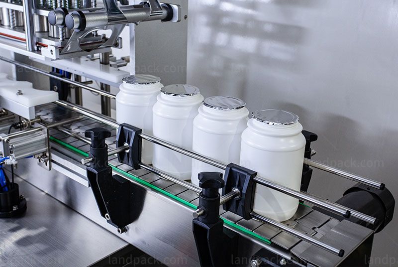 2. The heat sealing head and bottle clip device have been specially made according to the customer's bottle size fully automatic solution, to realize feeding, weighing, filling, servo capping, foil sealing, and labeling.