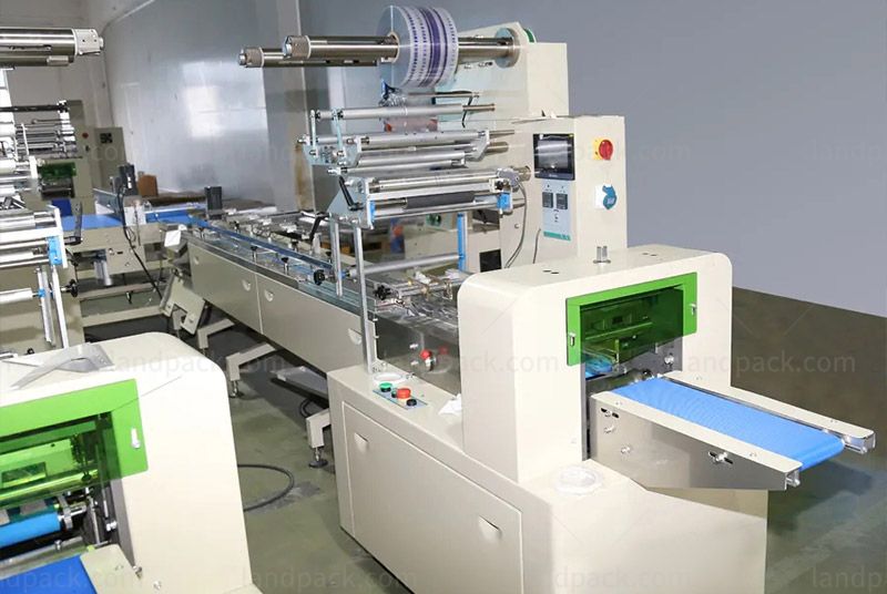 3.The items are sent to an independent flow wrapping machine for packaging.