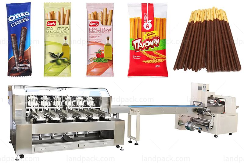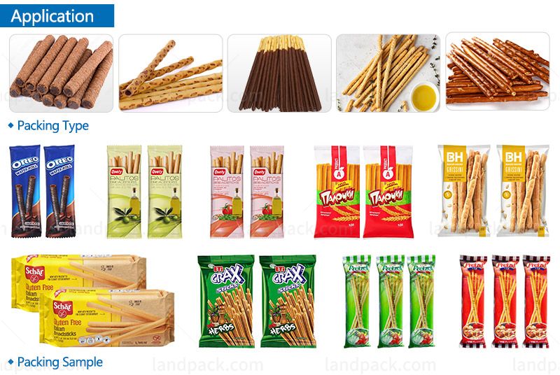 It is suitable for counting and packaging various stick products, such as bread sticks, biscuit sticks, crab sticks, egg rolls, chocolate sticks, snack sticks, etc.
