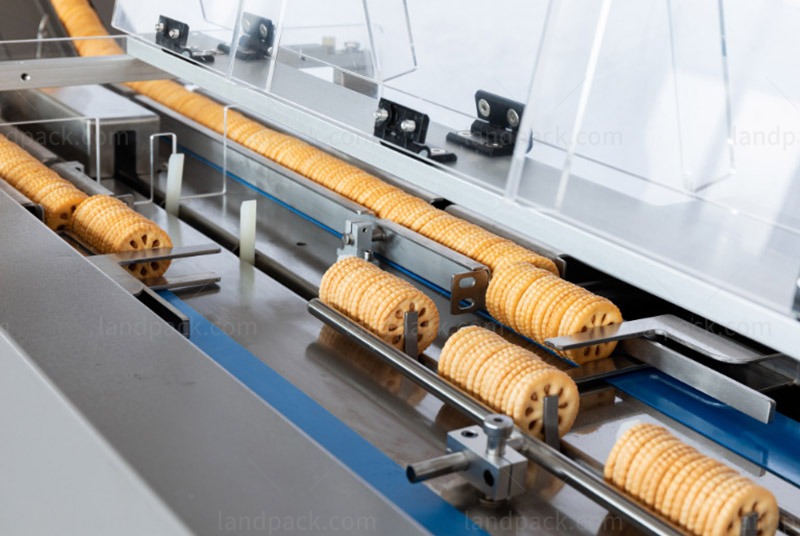 * Counting & Sorting – The system counts every biscuit precisely, and then arranges them in rows so that every bite is precise and uniform.