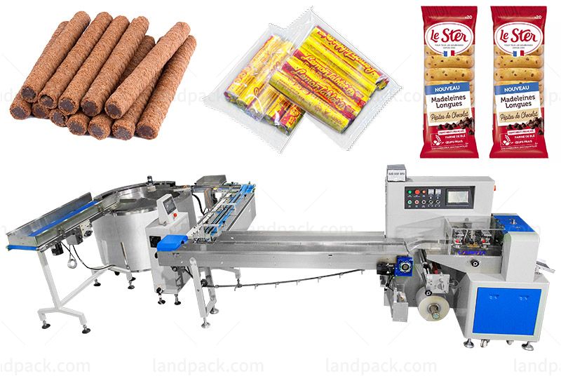 This Feeding Paccking Line is suitable for packaging a wide range of products, including rice crackers, biscuits, cookies, wafers, energy bars, chocolate bars, and various baked goods. Ideal for fast and efficient packaging in snack and small food production lines.