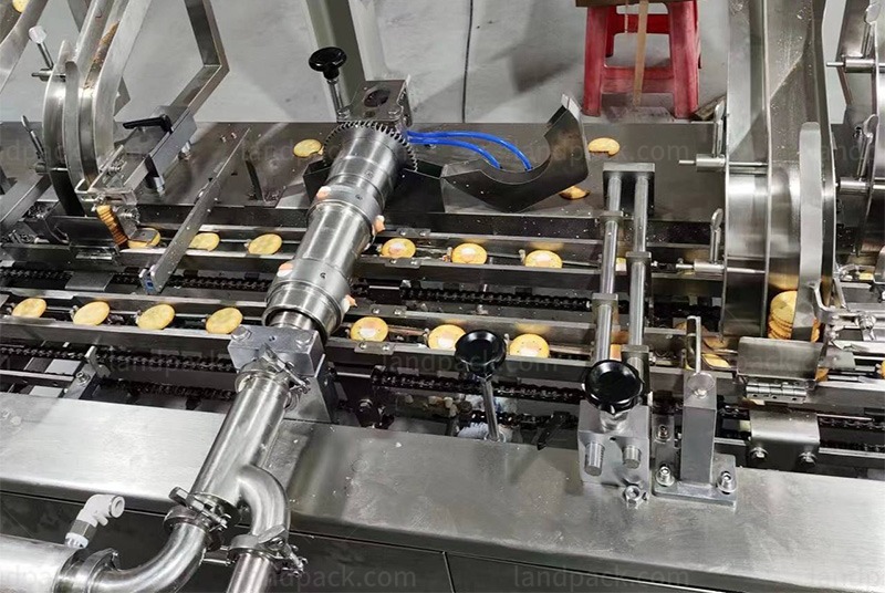 The Automatic Sandwich Biscuits Packing Machine On-edge Packing Machine can be used for a large range of baked food items and instant items that ensures neat and fast packaging for pillows.