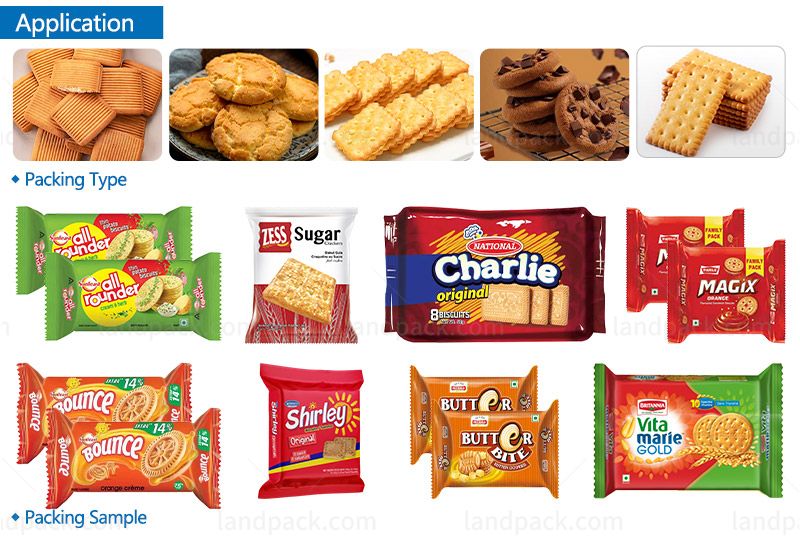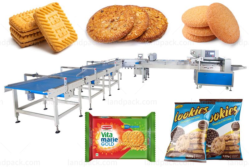 This feeding sorting wrapping machine line focuses on pillow packing of kinds of biscuits such as digestive biscuit, shortbread biscuit, oreo biscuit, rich tea biscuit, ginger snap biscuit, cream-filled biscuit, etc.