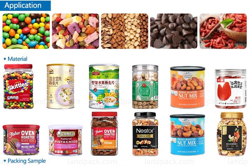 Suitable for packaging various granular products, such as rice, nuts, corn flakes, peanuts, melon seeds, pepper, pepper, oatmeal, etc. Suitable for all kinds of containers on the market, such as plastic cans, cans, prefabricated bags, etc.