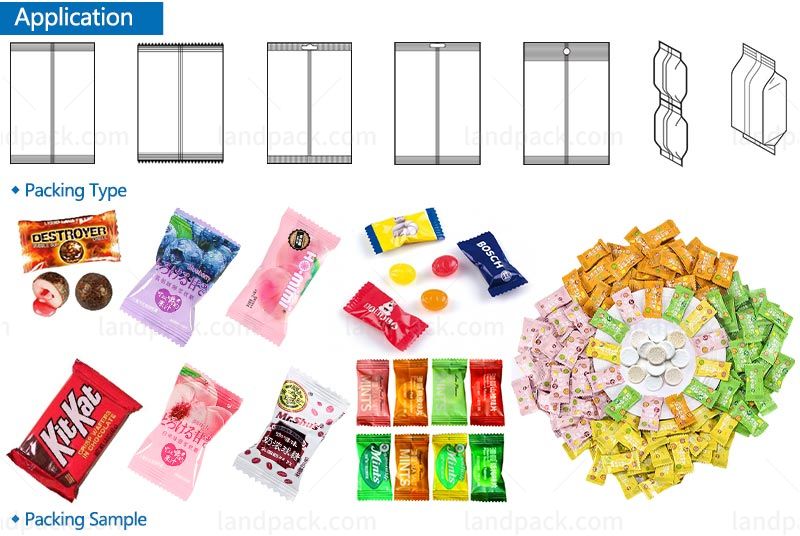 Packaging various kinds of regular objects like Candy, chocolate, chewing gum and suit for square, spherical, disc, cylindrical, kinked, oval and all kinds of special-shaped candies and solid blocks.