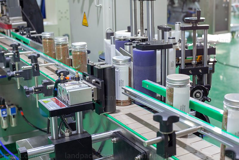 2. This line uses automatic bottle feeding, linear scale filling machine, four-wheel capping machine, wafer positioning round bottle labeling machine, and collection platform to form a fully automated production line;