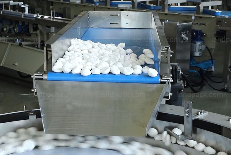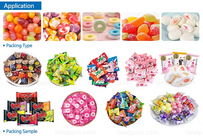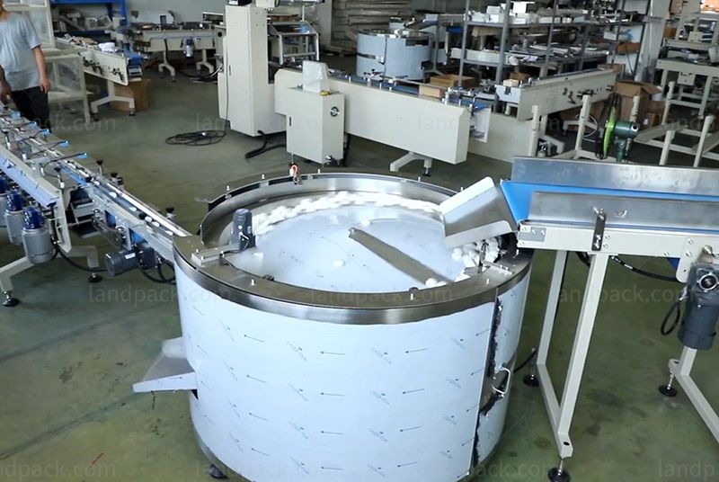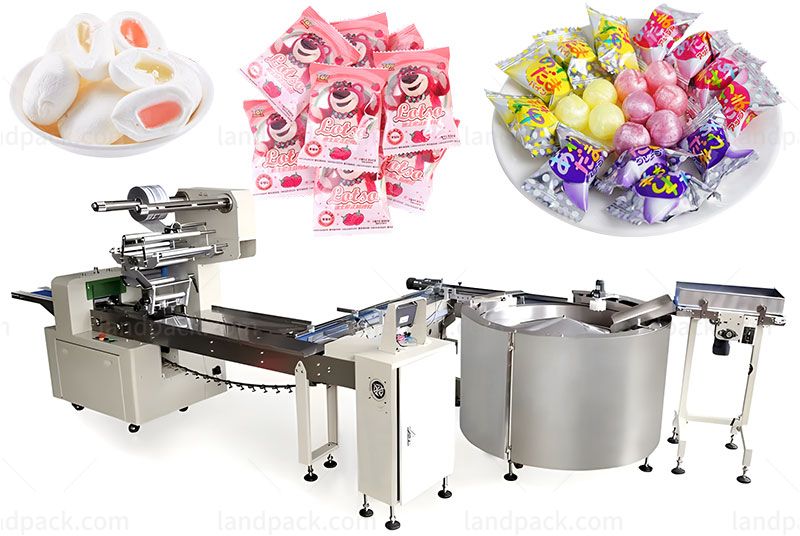 The turntable feeding and packaging line effectively utilizes limited space and is easy to operate. It is suitable for packaging non-breakable items and sticks, such as corn cobs, cereal bars, chocolate bars, Candy bar, biscuits, teething sticks.