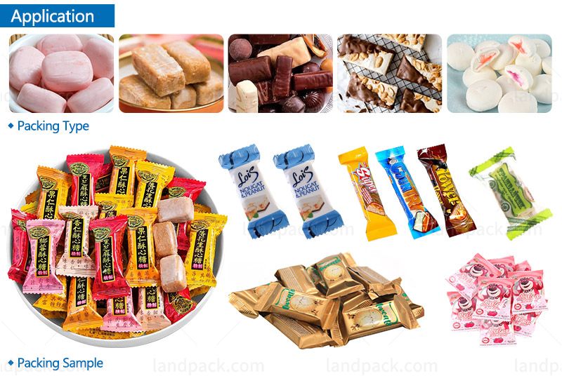 2. Candy packaging line with automatic feeding, demolding, conveying, and date printing for streamlined production.
