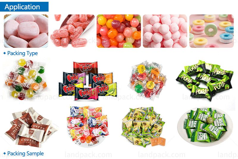Ideal for high-speed pillow packing of various block materials, including square, spherical, and uniquely shaped items. Suitable for products like hard candy, toffee, chewing gum, marshmallows, bubble gum, etc.