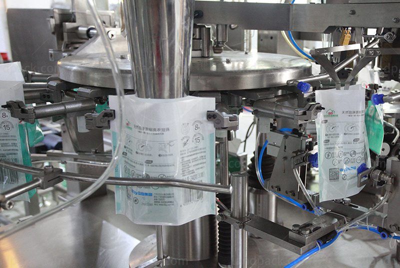 Work flow | giving bag→coding →opening →filling 1 →filling 2→ auxiliary→ exhaust→heat sealing→ .forming and output product |
