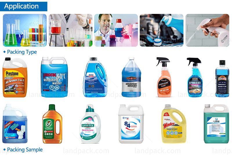 Suitable for all kinds of liquid, such as chemical liquid, gel, liquid detergent, alcohol, liquor, juice, wine, oil, etc. Gear-type linear filling machine with high precision filling, no dripping.