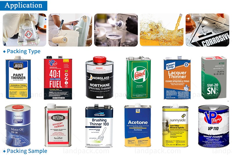 Suitable for all kinds of liquid, such as thinner, chemical liquid, gel, liquid detergent, alcohol, liquor, bleach, acid, pesticide, disinfectant, laundry detergent, etc. Gear-type linear filling machine with high precision filling, no dripping.