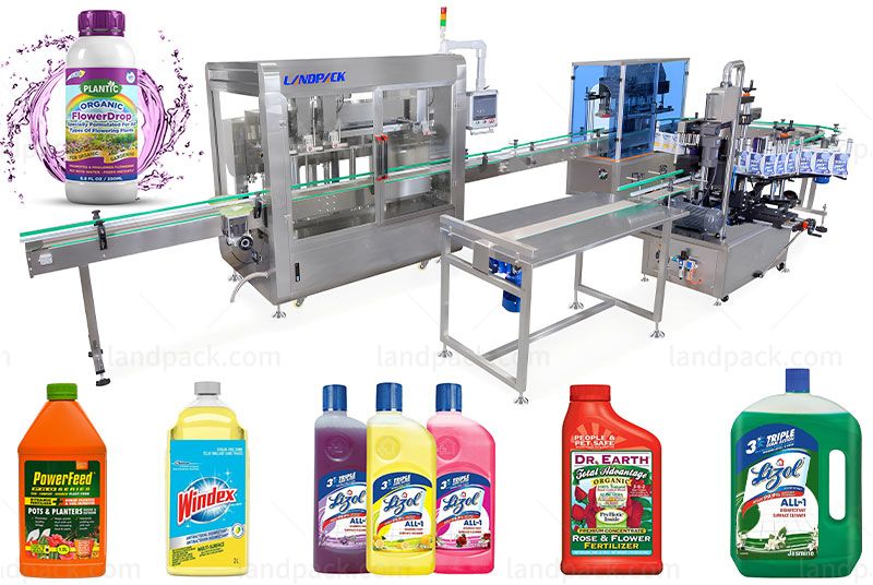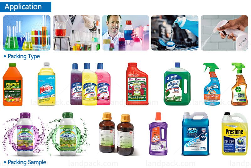 This chemical bottle tracking filling line is mainly suitable for packing all kinds of liquid, fluid chemical material such as laundry detergent, shower gel, shampoo, high viscosity liquid, thick cream, pomade grease, paint, pesticide, petroleum jelly, cosmetic cream, mobility liquid, automobile oil, glass water, disposable hand sanitizing gel, etc.