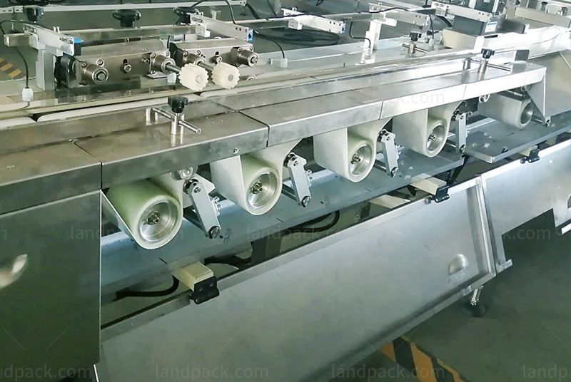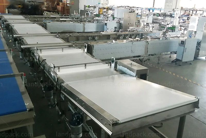 This feeding packing line is specially designed for efficiently sorting and packaging various types of chocolates, including milk chocolate, dark chocolate, hazelnut chocolate, almond chocolate, wafer chocolate, raspberry chocolate, and more.
