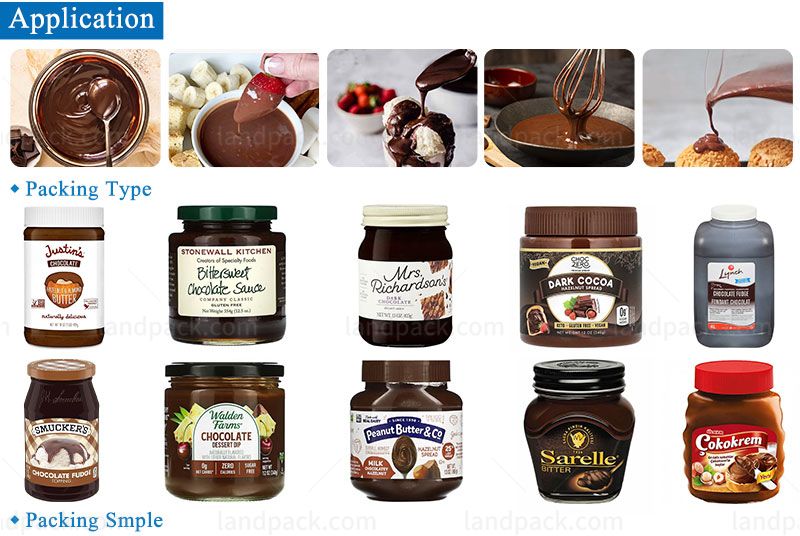The machine is suitable for chocolate sauce, alcohol, liquor, juice, honey, fruit jam, butter, tomato sauce, peanut butter, shampoo, body wash, liquid detergent, dishwashing liquid, etc.