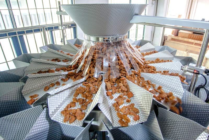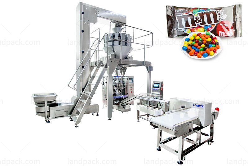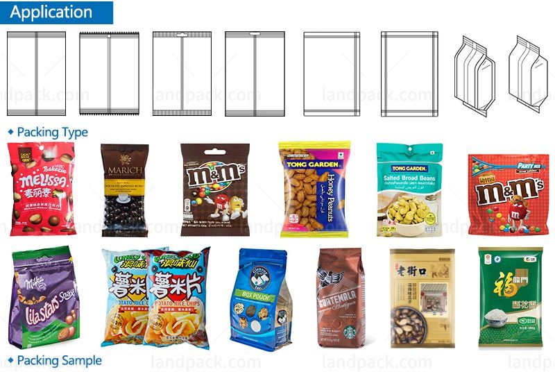 Automatic granule weighing packing machine with metal detector and weight sorting scale, it is suitable for various kinds of beans, nuts, peanuts, candies, seeds and such materials in grain or piece as well as powder like milk powder, washing powder, starch, etc.