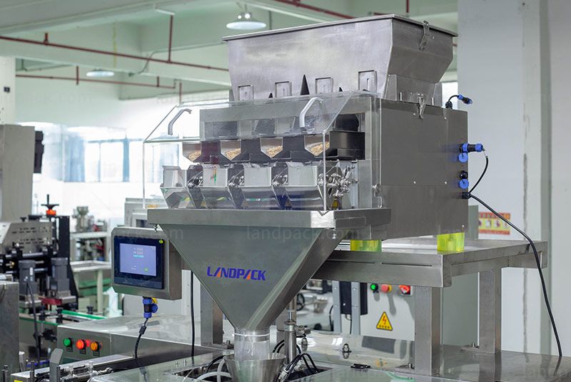 This machine is full automatic workflow, pouch delivery, date printing, pouch opening, filing, sealing, product completion. Suitable for liquid, powder, solid, and other products packaging.