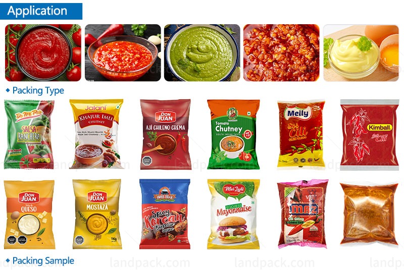 The machine is suit for automatic filling and packing liquid/paste/sauce/cream item, such as chutney, honey, hair shampoo, tomato paste, salad dressing, jam etc. The machine adopt the pump dosing unit which have the machine advantage of suit for viscous liquid item with high efficient and reliable performance.