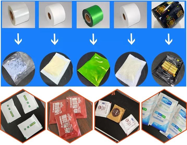 Suitable For 3 Sides Sachet Packing Sachet Of Fine Particles Such As Coffee, candy, melon seeds, chips, peanuts, nutlet , preserved fruit, jelly, biscuit, confect, camphorball, currant, almond, chocolate, fibert, cornpet foodstuff, dilatant foodstuff, hardware and plastic etc.