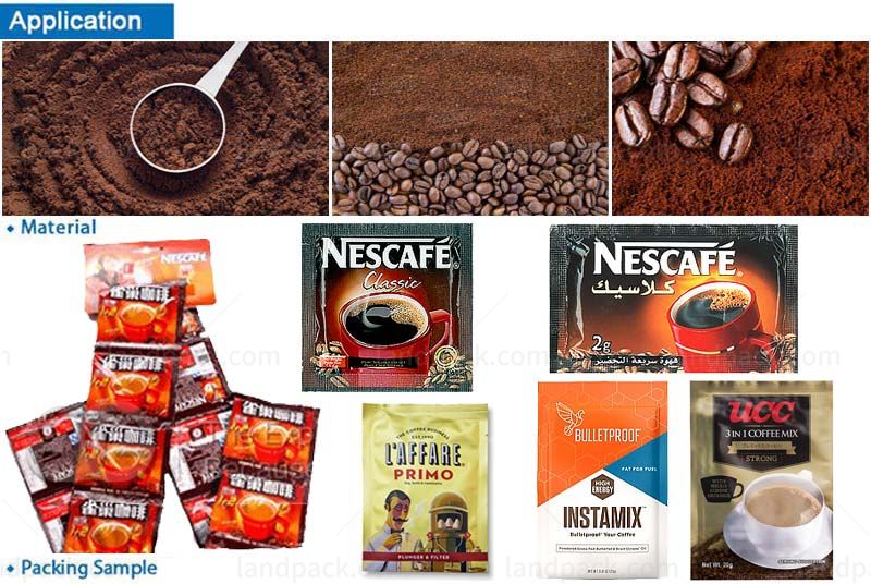 Suitable For 4 Side Sealing Packing All Kinds Of Powder, Which Such As Coffee powder, Milk Powder, Spices, Curry Powder, Flour, Starch, Sugar Powder, Wheat Flour, Detergent Powder Chemical And Medical Powder And So On Packaging.