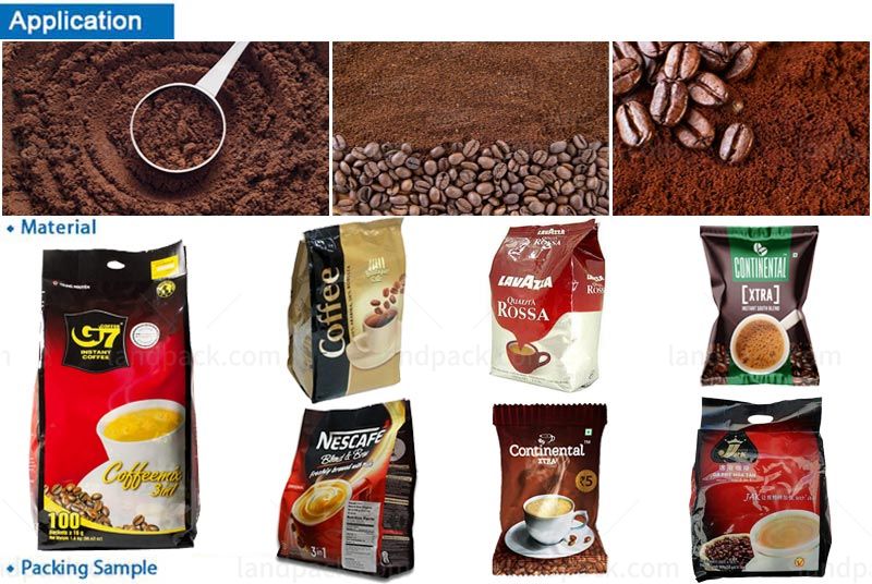 Suitable for packing fine dry powder materials,such as coffee powder, milk powder, spices powder, corn flour, laundry powder,coconut powder, fruit powder, collagen protein powder, cocoa powder, chilli powder, etc. It integrates metering, bagging, packing, sealing, date printing and counting into one.