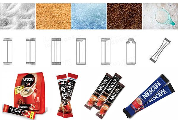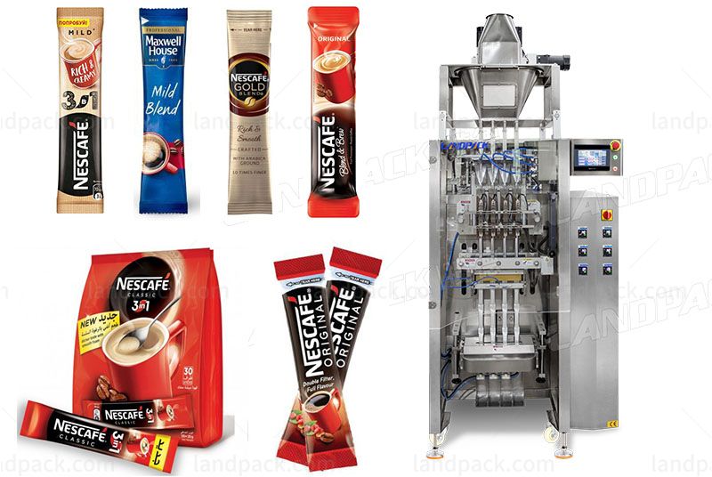 Full automatic coffee powder multilane packing machine, it is suitable for stick packing of small granule, such as coffee powder, 3 in 1 coffee, sugar, salt, aginomoto, desiccant, health products industry and so on.