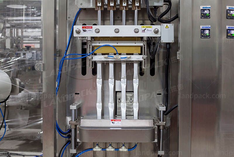 Machine main function: automatic split film at right position, liquid measuring and filling, multi lanes bag form fill seal, cutting, sensor tracking, counting capacity.