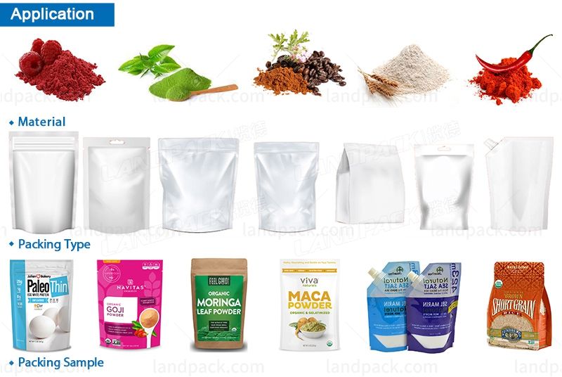 Suitable for automatic packing for Powder: milk powder, coffee powder, food additives, condiments, tapioca powder, coconut powder, pesticide powder, fertilizer granules etc.