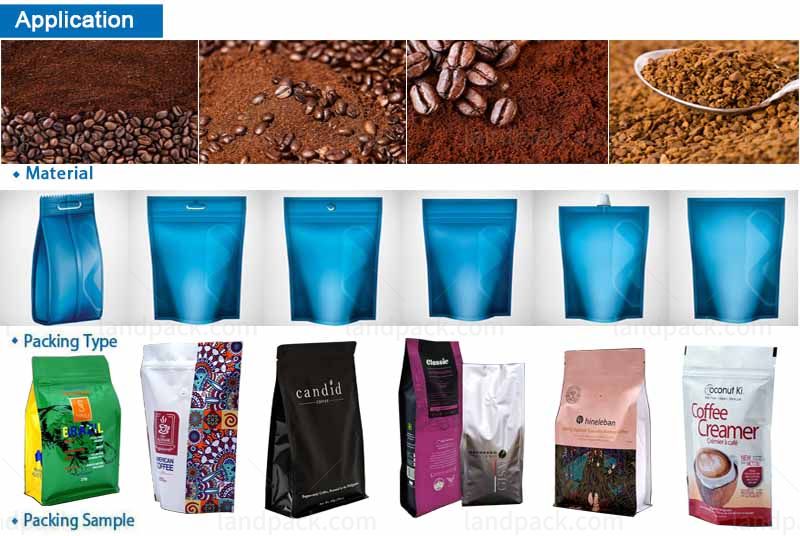 Powder premade pouch rotary doypack machine, suitable for packing for dry powder, such as Coffee Powder, instant coffee, milk powder, glucose, monosodium glutamate, seasoning, washing powder, chemical materials, fine white sugar, pesticide, fertilizer, etc.