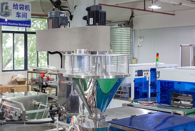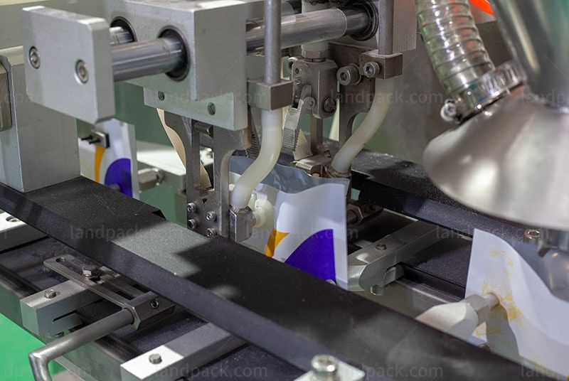 Machine machine can equipment with different metering system like weigher, liquid pump, auger filler, bucket chain for different kinds of product filling and packing in premade bag.