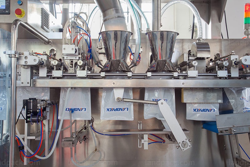 4. Bag Giving – Pre-made pouches are automatically placed into the machine.