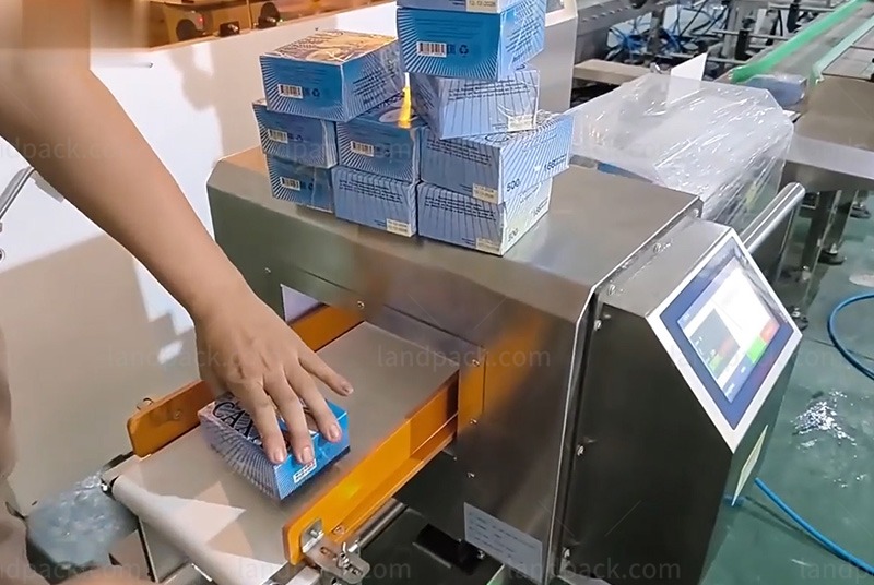 1. Put in boxed products – Boxed products are placed onto the conveyor system.