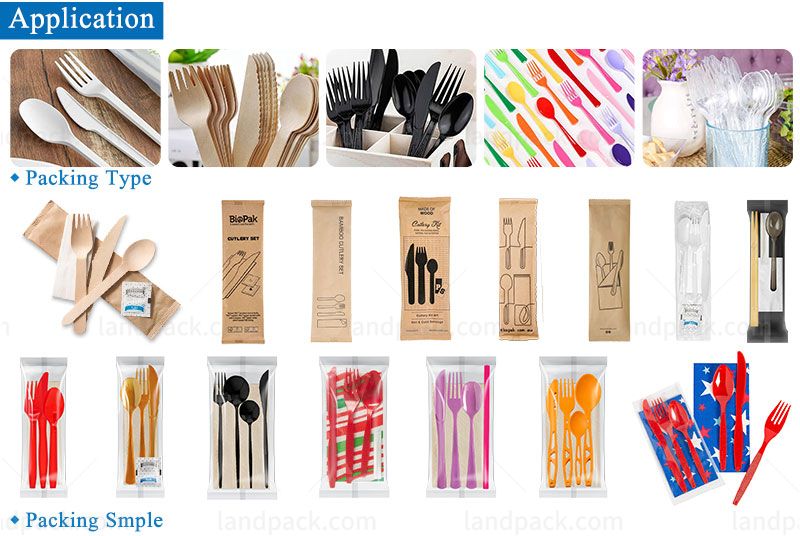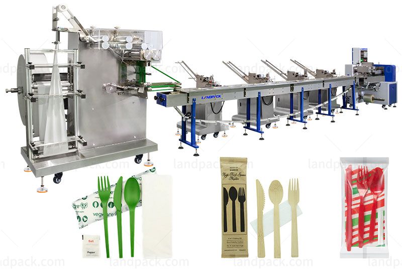 This automatic packing line is designed for fast and efficient packaging of various disposable tableware sets, including napkins, toothpicks, spoons, forks, and knives. This system integrates napkin cutting and folding, accurate toothpick packing, and automatic feeding of utensils, ensuring seamless operation.
