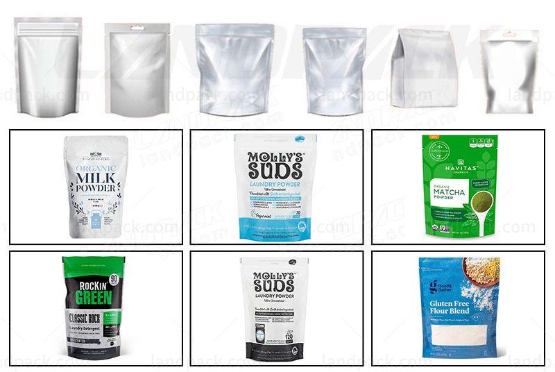 Suitable Pouches: All type of heat sealable preformed side seal bags, fin seal bags, gusseted bags, block bottom bags, zip-lock recloseable bags, stand-up pouch with or without spout ect.