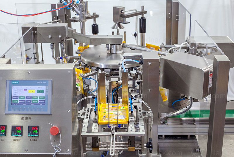5.Rotary doypack machine has the functions of no bag no filling & no filling no sealing.