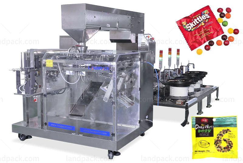 Automatic mixed dry fruit doypack packing machine, It is suitable for pre-made bag packaging of various granular mixtures, such as mixed dry fruit, mixed nuts, daily nuts, mixed candies, mixed screw fasteners, etc.