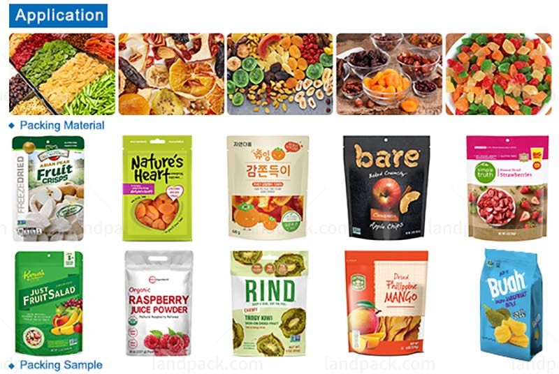 Dry fruit mini doypack premade pouch 5-15kg packing machine(LG1-600AS), it can flexibly adapt to bags of various specifications for packaging to improve production efficiency. Such as dry fruit, beef jerky, nuts, cashew, coffee, frozen food, biscuits, cereals, pet food, powdered materials, candy, beef jerky, sugar/ salt, etc.