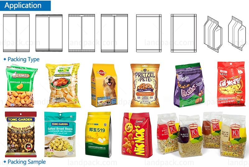 Dry Fruit Packing Machine With Labeling Machine Metal Detector And Weight Selection Scale, it is suitable for various kinds of dry fruit, apple dried fruits, raisin, nuts, peanuts, candies, seeds and such materials in grain or piece as well as powder like milk powder, washing powder, starch, etc.