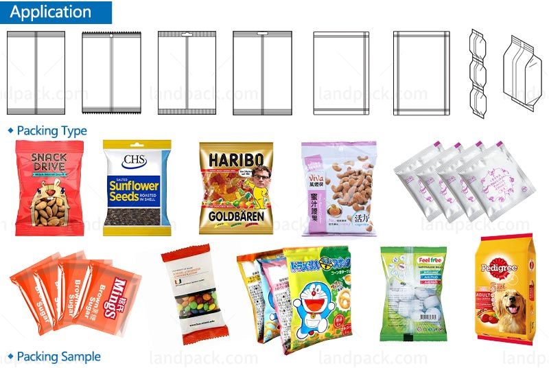 Suitable for various kinds of dry fruit, apple dried fruits, raisin, nuts, peanuts, candies, seeds and such materials in grain or piece as well as powder like milk powder, washing powder, starch, etc.