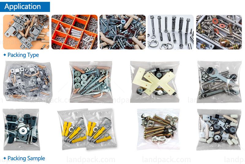 Suitable for automatic counting and packing machine for fasteners, hinges, screws, nails, bolts, nuts, gaskets, bearings, glass parts, plastic parts, furniture accessories, toy accessories, blind nuts, gaskets, hardware, and plastic parts, etc.
