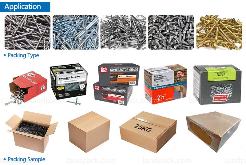 Scope of application: Suitable for granular quantitative weighing and packaging of hardware, fasteners, nails, screws, nuts, etc.