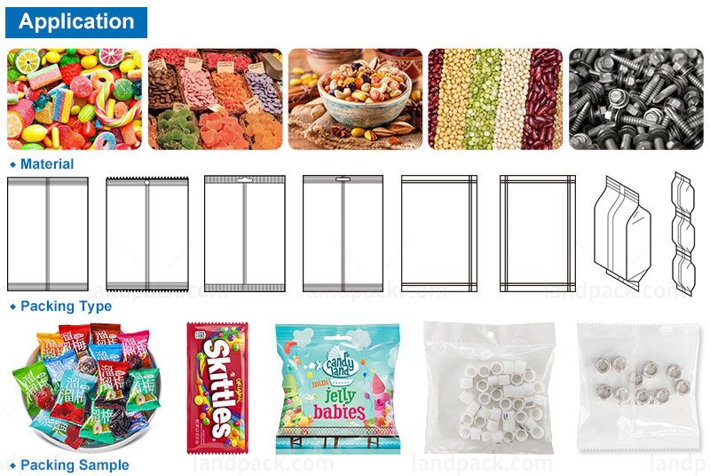 Suitable for automatic counting and packing machines for screws, nails, bolts, nuts, gaskets, bearings, glass parts, plastic parts, furniture accessories, toy accessories, blind nuts, gaskets, hardware and plastic parts, etc.