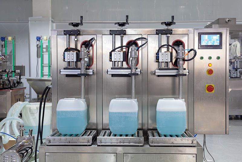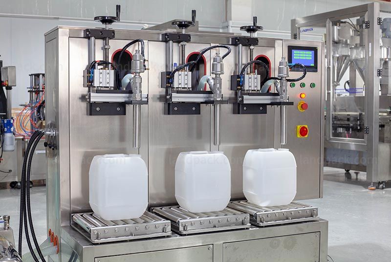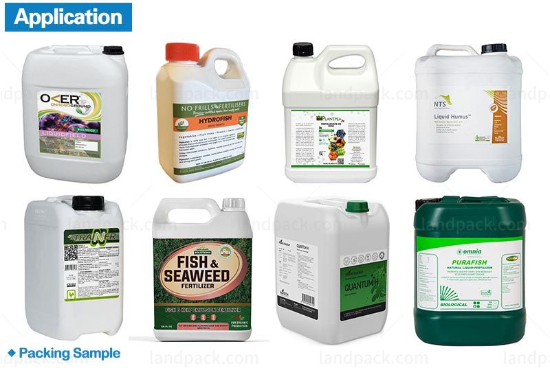 The auto line is weighing dosing filling for fluid. Widely used in food, beverage, chemical, medicine, condiments and other industries.such as : organic fluid fertilizer, syrup, essence, paint, oil , detergent, lubrication oil, paint, pesticide, soy sauce etc.