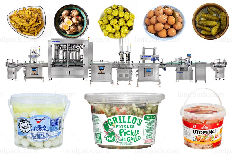 This fully automatic bucket filling line is designed for quail eggs but also suits pickled vegetables, pineapple slices, chopped olives, sweet peas, and other pickled foods, ensuring efficient and precise packaging.